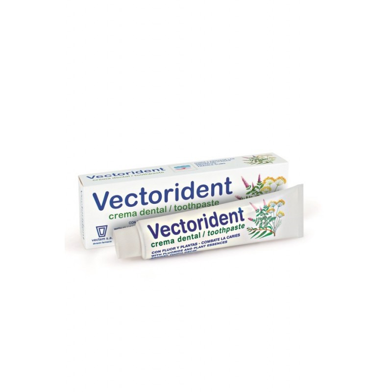 Crema dental con flúor y esencias de plantas, que combate la caries, el sarro y la placa bacteriana dental.