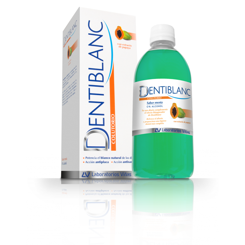 La fórmula de Dentiblanc Colutorio está reforzada por la papaína, enzima del fruto de la papaya, que disuelve los restos de alimentos que quedan adheridos allí donde el cepillo no llega y que potencia el blanco natural de los dientes.