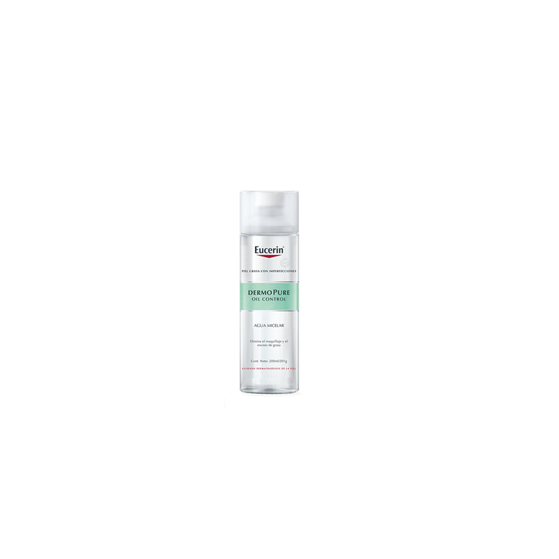 Eucerin DERMOPURE OIL CONTROL Agua micelar es una solución refrescante con APG Complex: un agente tonificante que limpia la piel y elimina el maquillaje, efectivo y extrasuave.