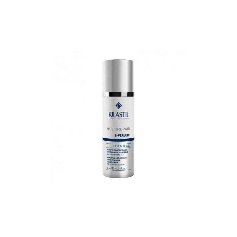 Rilastil Multirepair S-Ferulic Serum 30ml es un concentrado con activos antiedad que ayuda a eliminar las arrugas superficiales y combatir los signos de fatiga. Su fórmula con superóxido dismutasa y ácido ferúlico combate los signos de la edad y devuelve a tu rostro la luminosidad y firmeza perdidas. Además contiene extractos de ginkgo, vid roja y ácido hialurónico, potenciando su efecto.