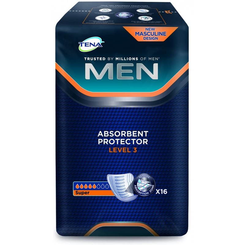 TENA Men Protector absorbente Level 3 desechable es el protector más seguro para hombres para tratar las pérdidas de orina abundantes o la incontinencia de urgencia tanto de día como de noche