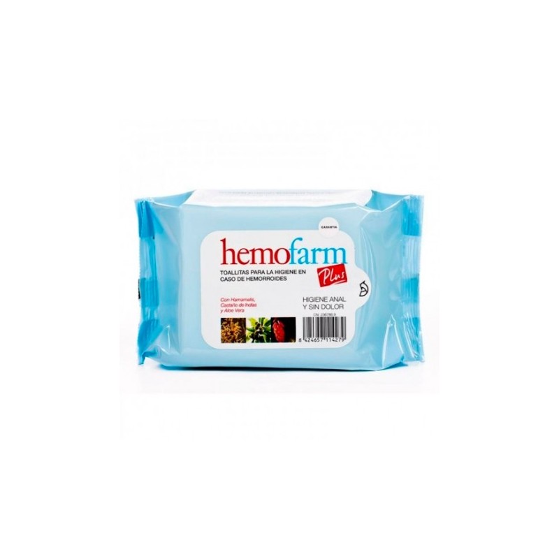 Hemofarm Plus Toallitas 60 unidades es una solución higiénica especialmente formulada para realizar una limpieza aséptica, suave, calmante, refrescante y no irritante después de cada evacuación en aquellos casos en los que la utilización de papel higiénico está desaconsejado, como con hemorroides y fisuras anales. Estas toallitas deben su eficacia a la exclusiva fórmula con extractos vegetales de hamamelis, castaño de indias y aloe vera.