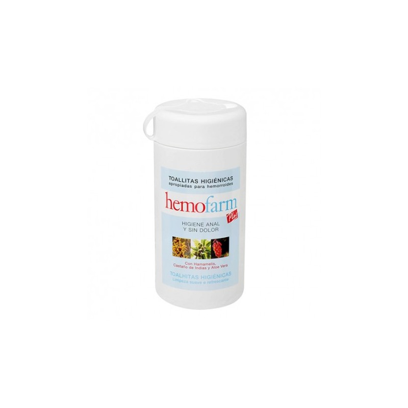 Hemofarm Plus Toallitas Bote 60 unidades es una solución higiénica para realizar una limpieza aséptica, suave, calmante, refrescante y no irritante después de cada evacuación. La fórmula de estas toallitas contiene extractos vegetales de hamamelis, castaño de indias y aloe vera.