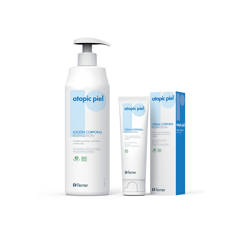 La crema y loción corporal para piel atópica tienen acción reparadora, emoliente y protectora. Promueven el mantenimiento y la mejora de la estructura epidérmica, ejerciendo un efecto preventivo y calmante. Su fórmula está enriquecida con ingredientes activos que alivian el picor y refuerzan la barrera cutánea agredida.