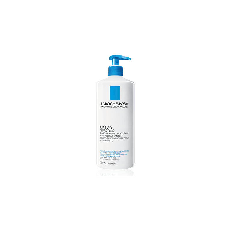 La fórmula de LIPIKAR Surgras está enriquecida con un 10% de concentrado rico en lípidos y niacinamida para ayudar a reparar la barrera de la piel y reponer sus lípidos en la ducha.