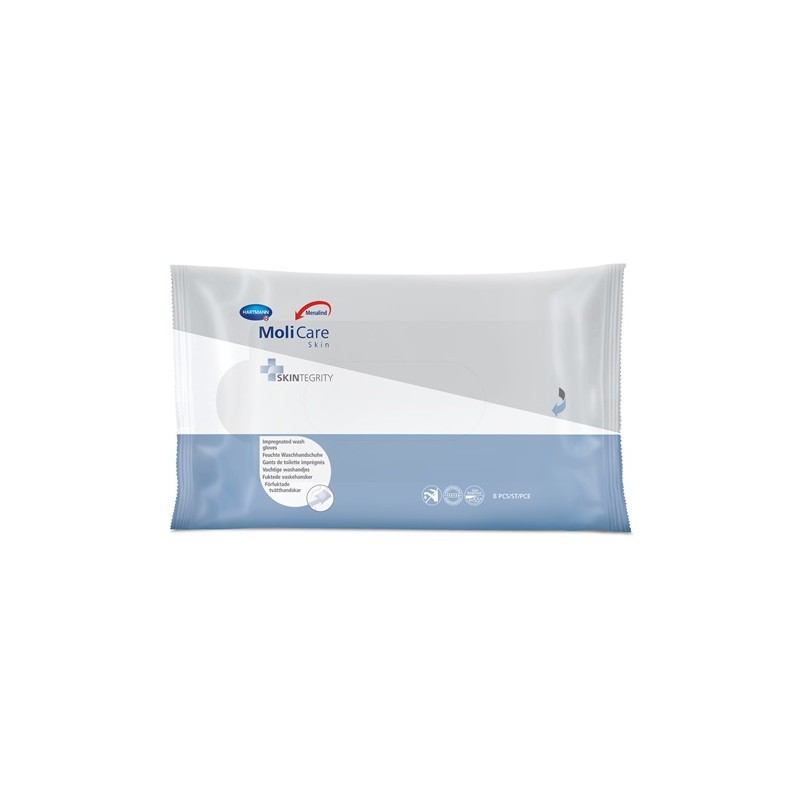 Manoplas higiénicas de tejidos-sin-tejer especialmente suaves. Impregnadas con productos limpiadores de formulación equilibrada para el pH de la piel. Con pantenol y aloe barbadensis.