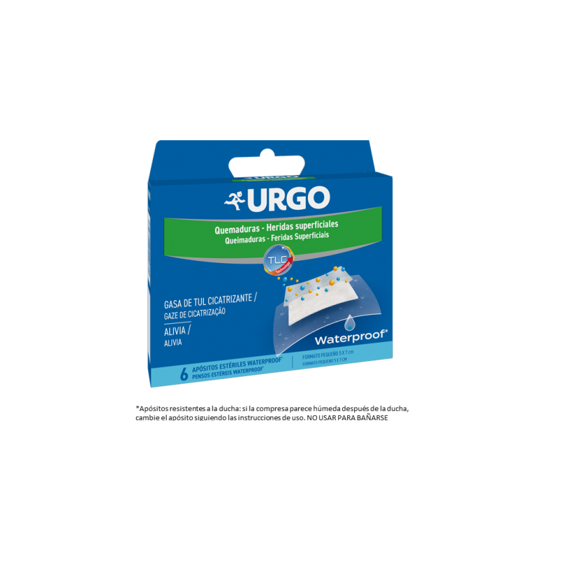Los apósitos estériles  URGO Quemaduras y Heridas Superficiales están indicados para el tratamiento de quemaduras de 1er grado y 2º grado superficial (ampollas), así como heridas superficiales (abrasiones, pequeños cortes).