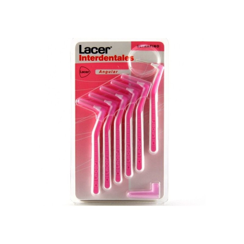 Lacer interdentales angular se caracteriza porque su mango es angulado lo que permite un giro de hasta 90°. Este tipo de mango facilita el agarre para llegar a las piezas más distales y díficiles de llegar. Este modelo permite un mayor acceso a los espacios entre molares.
