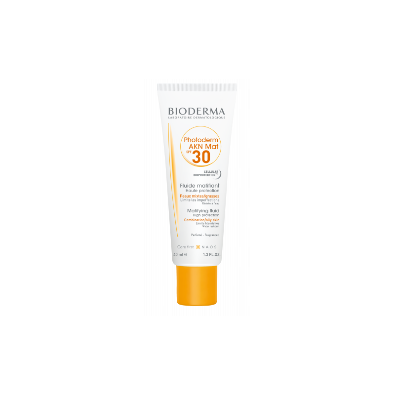 La exclusiva patente Fluidactiv™, una innovación de BIODERMA, presente en Photoderm AKN Mat regula de manera biológica la calidad del sebo para evitar la obstrucción de los poros y la aparición de imperfecciones, que suelen exacerbarse después de los períodos de exposición al sol (efecto rebote). Además de la actividad protectora anti-UVA/UVB de la superficie (sistemas de filtros), Photoderm AKN Mat ofrece protección biológica interna gracias a la patente Cellular Bioprotection™. Esta patente protege y estimula las defensas de la piel durante la exposición solar.