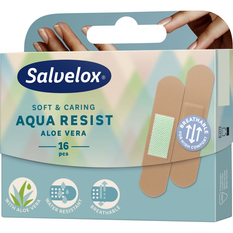 Un apósito resistente a la suciedad y al agua que permite la transpiración de la piel. Tiene buena adherencia y es flexible. La compresa para la herida contiene aloe vera, que es ampliamente conocida por sus propiedades beneficiosas.