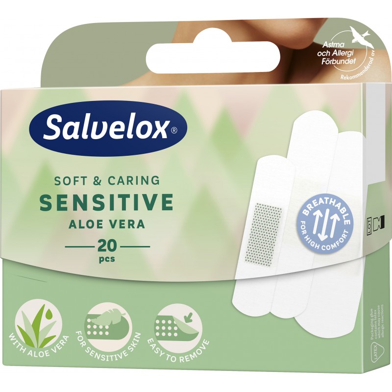 Un apósito para piel sensible que es sencillo de quitar. Es suave, cómodo y permite la transpiración de la piel. La compresa para la herida contiene aloe vera, que es ampliamente conocida por sus propiedades beneficiosas.