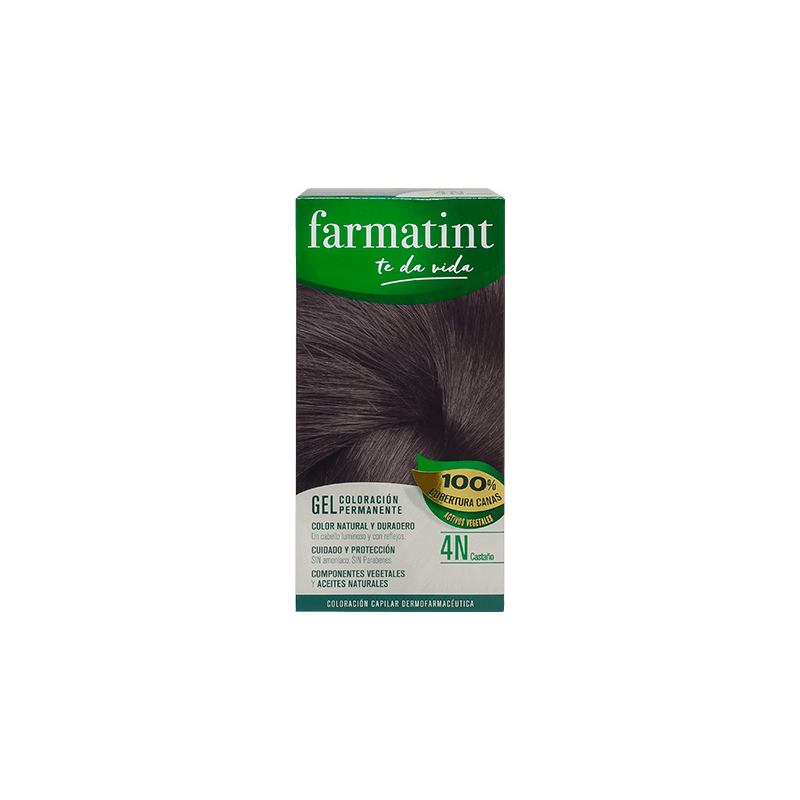 Escoge tu tinte entre los 25 tonos de farmatint® Gel Coloración Permanente, tu coloración capilar dermofarmacéutica con componentes vegetales y aceites naturales, sin amoníaco ni parafinas, para cubrir el 100% de tus canas con un color natural y duradero.