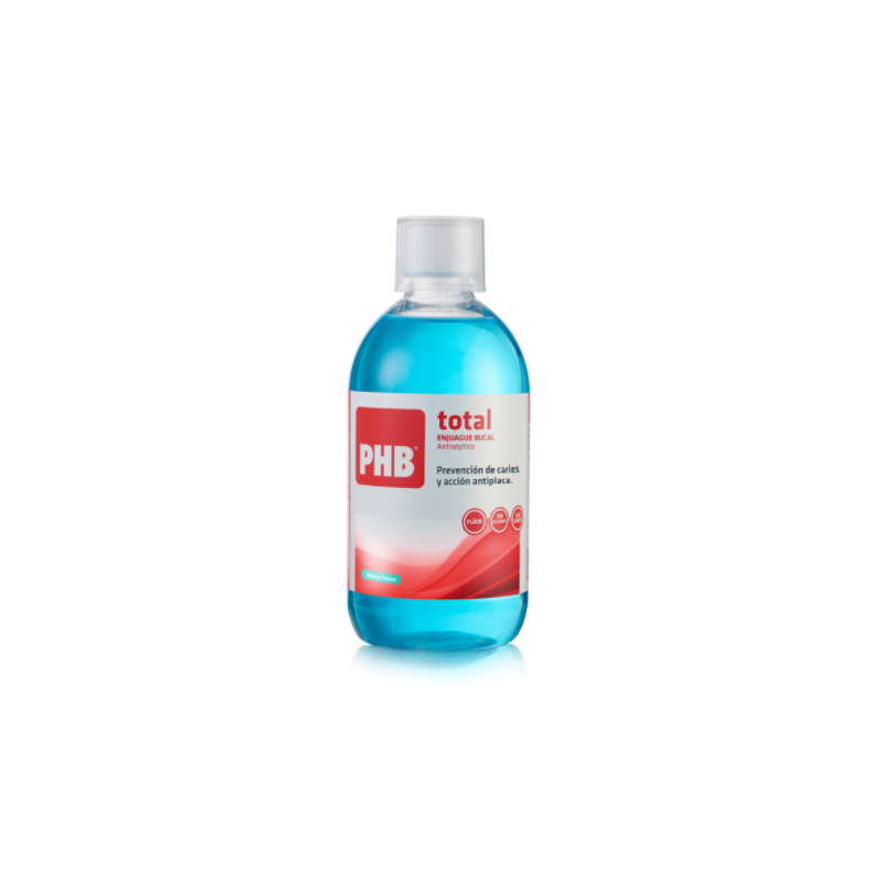 El enjuague PHB Total está indicado para la prevención eficaz de la caries, la placa y el control del mal aliento.