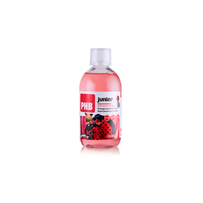 El enjuague bucal PHB Junior Lady bug ayuda a remineralizar el esmalte y proteger contra la caries.