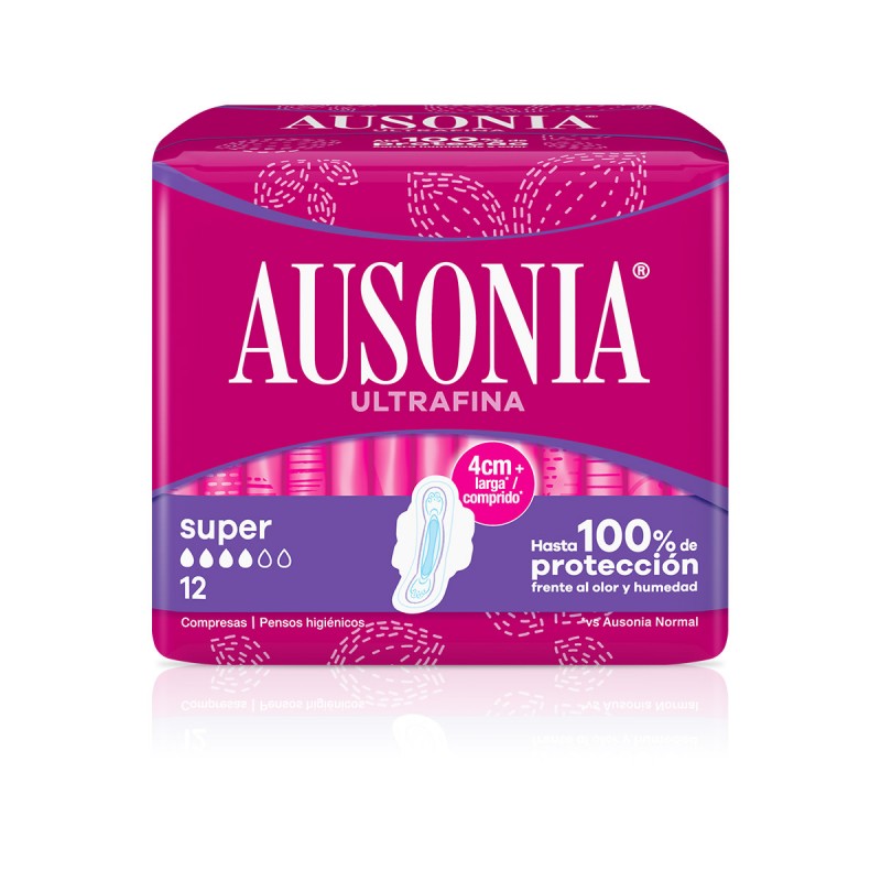 Estas finas compresas están diseñadas para los días en los que tienes un flujo abundante. Las compresas Ausonia Super son 4 cm más largas y más absorbentes (en comparación con las compresas Ausonia Normal), y tienen barreras protectoras laterales para evitar que el flujo llegue a los bordes, protegiéndote durante ocho horas.