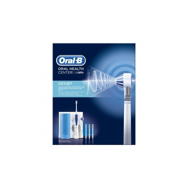 Es un impulsor de agua Oral B, que actúa impulsando agua a presión en tus dientes, limpiando gracias a la combinación de microburbujas con aire y agua que arrastran las bacterias responsables de la formación de la placa y del mal aliento.