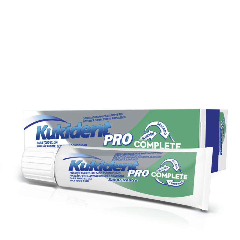 • Para obtener unos resultados aún mejores, utilice alguno de los adhesivos para prótesis dentales de la gama premium de Kukident: La Mejore Fijación, La Mejor Protección y La Mejor Tecnología de Sellado.