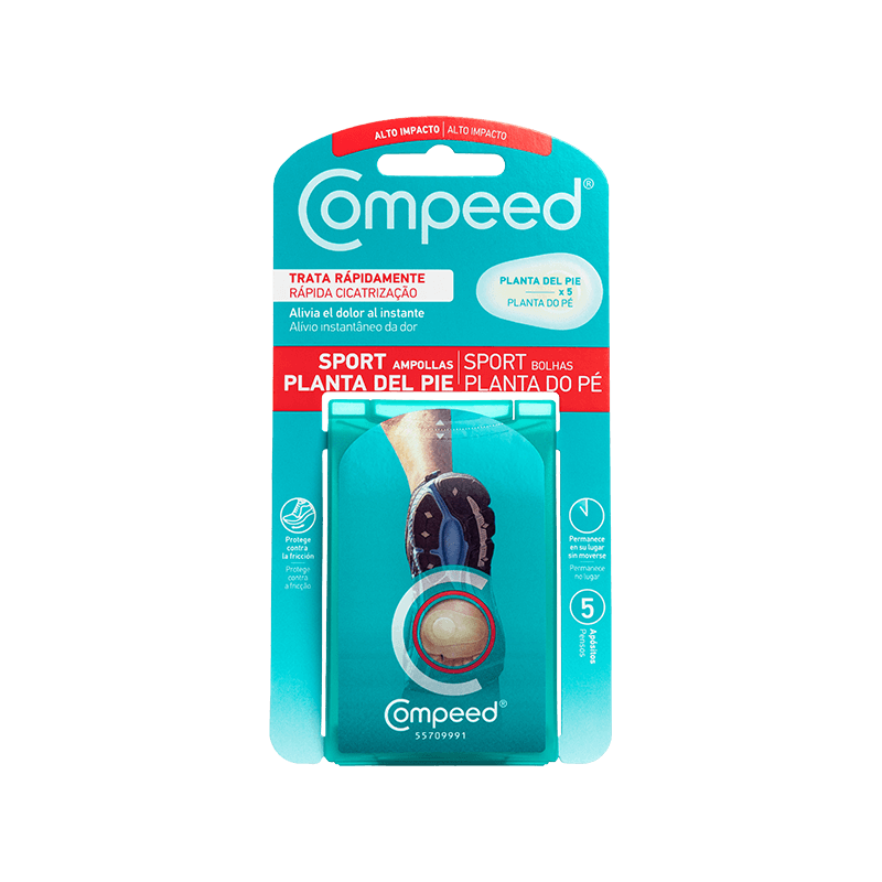 Los apósitos para Ampollas en la Planta del Pie de COMPEED® han sido especialmente diseñados para adaptarse a la planta del pie y protegerla contra los roces.