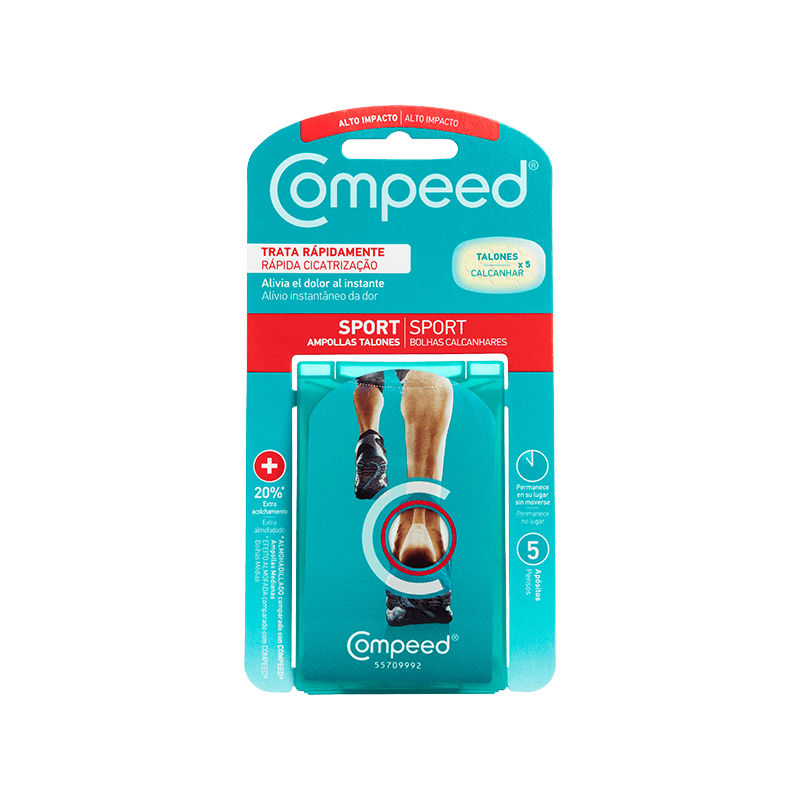 Los apósitos COMPEED® Sport Ampollas Medianas cuentan con la avanzada tecnología hidrocoloide para un alivio del dolor al instante y una curación más rápida.