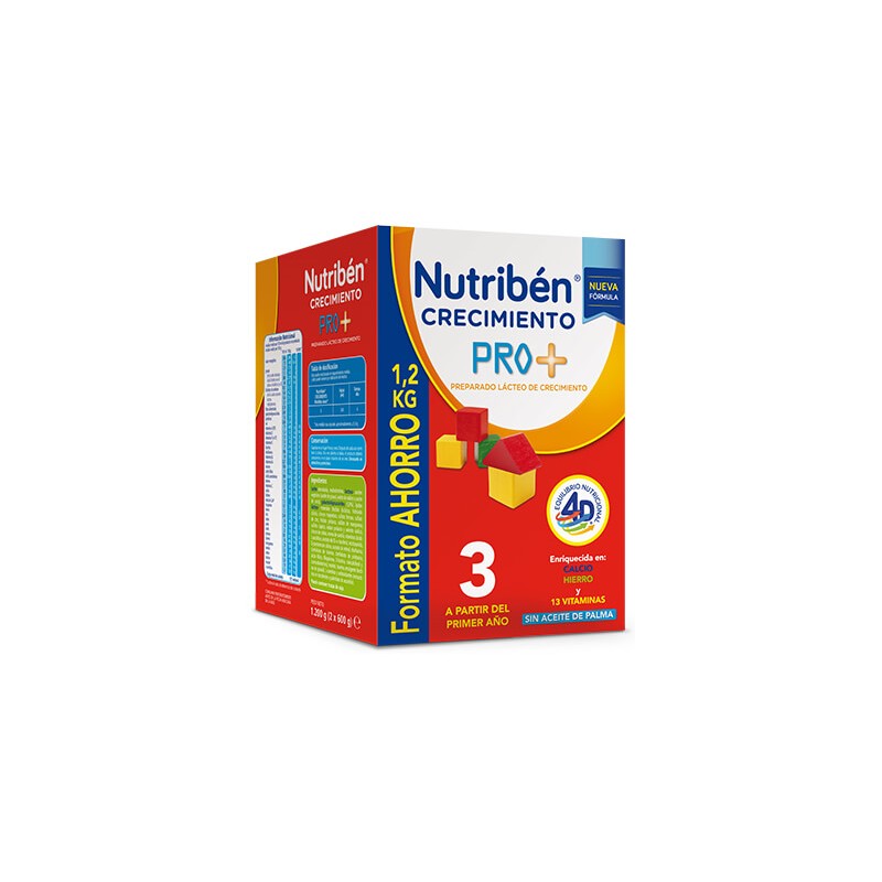 Si lo comparamos con el formato de 800gr. ofrece un 50% más de producto. La alimentación infantil para tu bebé a partir de 12 meses con la fórmula Nutribén® Crecimiento sin aceite de palma.