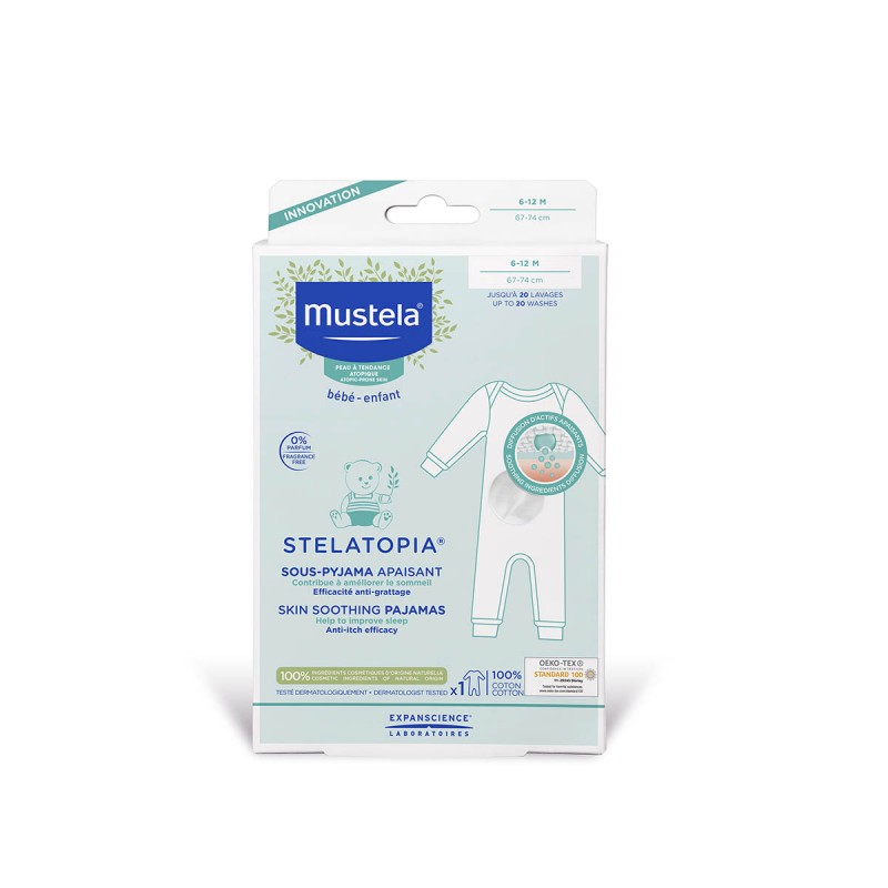 Pijama calmante para la piel, especialmente diseñado para pieles propensas a ser atópicas.