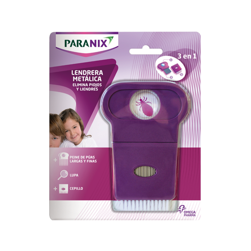 Lendrera metálica con púas largas y finas que permite eliminar eficazmente los piojos y liendres de forma fácil, rápida y precisa sin dañar el cabello.
