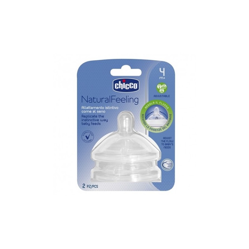 Chicco Natural Feeling Tetina Flujo Regulable 4m+ 2 uds se han diseñado para seguir el desarrollo de la boca de su bebé y la forma de comer. Están equipados con una válvula anticólicos que regula el flujo de aire en la botella y evita el riesgo de cólicos, hipo y regurgitación.