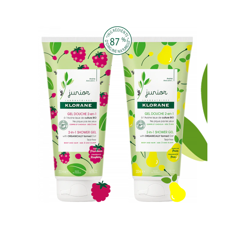 Con su perfume afrutado de frambuesa o de pera, esta fórmula fundente enriquecida con agentes nutritivos y biodegradable, limpia con toda delicadeza la piel y el cabello con una espuma ligera, fácil de aclarar y que ¡no pica en los ojos!