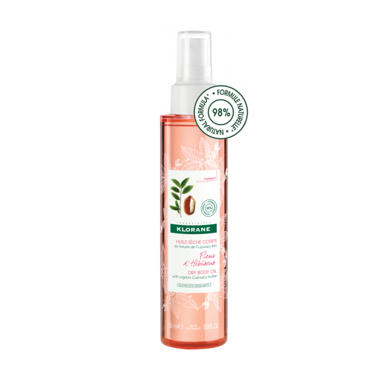 Enriquecido con manteca de Cupuaçu Bio (Theobroma grandiflorum), activo 1,5 veces más nutritivo que la manteca de Karite, la fórmula natural en un 98% del Aceite seco Cuerpo nutre inmediatamente y sublima la piel.