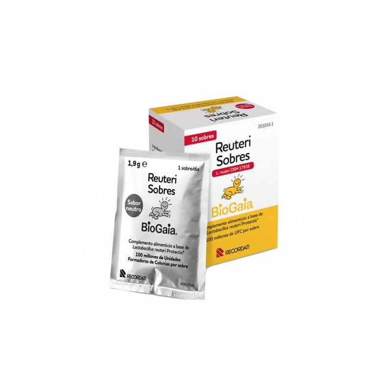 Es un complemento alimenticio elaborado a base del probiótico Lactobacillus reuteri protectis que favorece el buen estado del organismo. Cada uno de los 10 sobres de Reuteri contiene 100 millones de Lactobacillus reuteri, los cuales contribuyen a la repoblación de la flora intestinal que se pierde durante la diarrea. Este complemento alimenticio está libre de gluten, lactosa y glucosa.