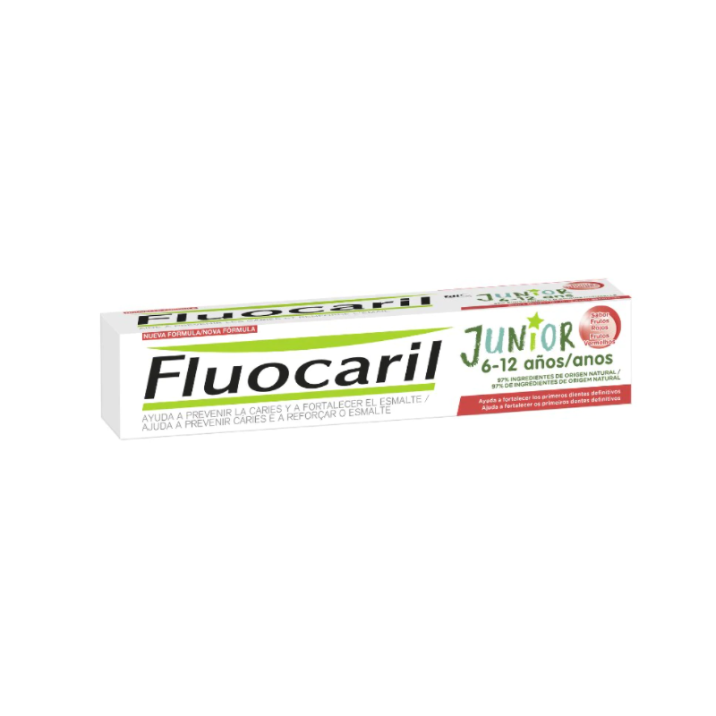 Recomendado por los dentistas, Fluocaril Junior sabor frutos rojos 145mg es una pasta de dientes para niños indicada para ayudar a fortalecer los dientes definitivos de los niños y reducir la aparición de caries, gracias a su alto contenido en flúor.