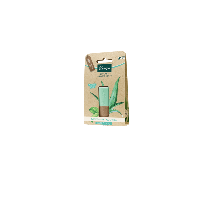 Bálsamo labial 100% natural con extracto de menta acuática, valioso aloe vera y una ligera fragancia acuática.