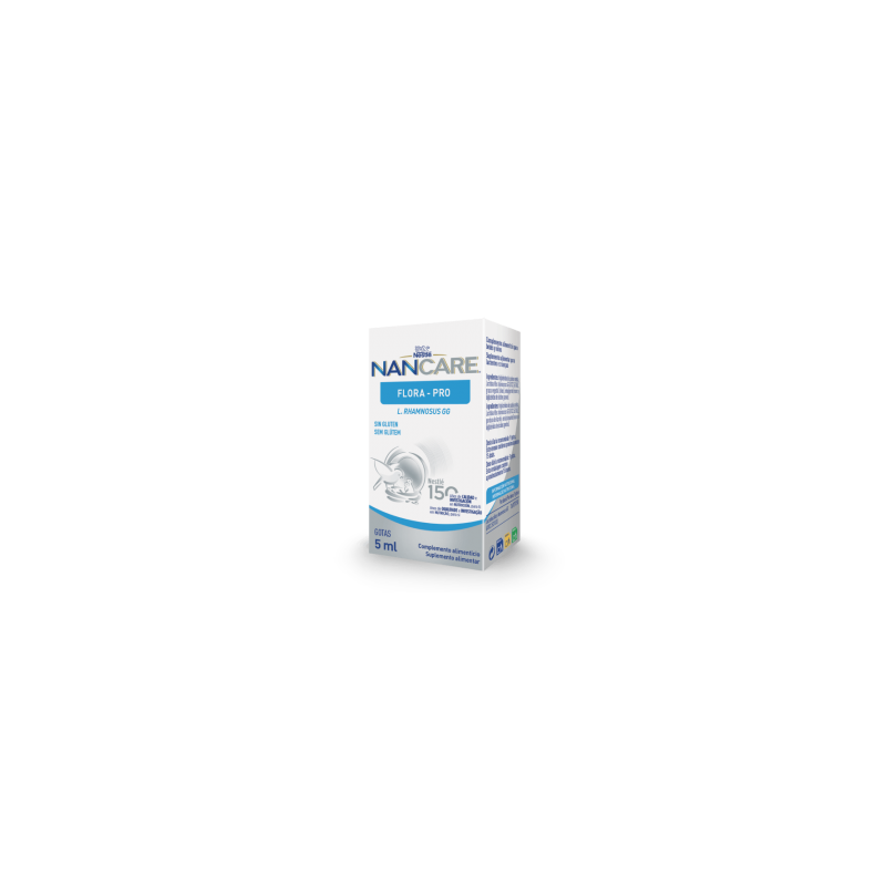 El nuevo Nestlé NANCARE FLORA-PRO contiene L.rhamnosus GG, una bacteria beneficiosa presente en la leche materna que administrada por vía oral coloniza el intestino del niño.