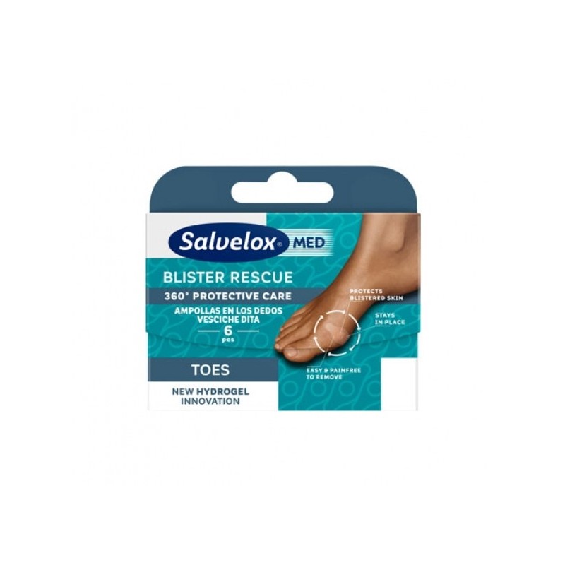 Salvelox Blister Rescue Ampolla Dedos 6 Unidades protege la piel con ampollas y alivia la presión. Su nuevo diseño innovador, con compresa de hidrogel, permanece en su sitio y es indoloro cuando se retira.