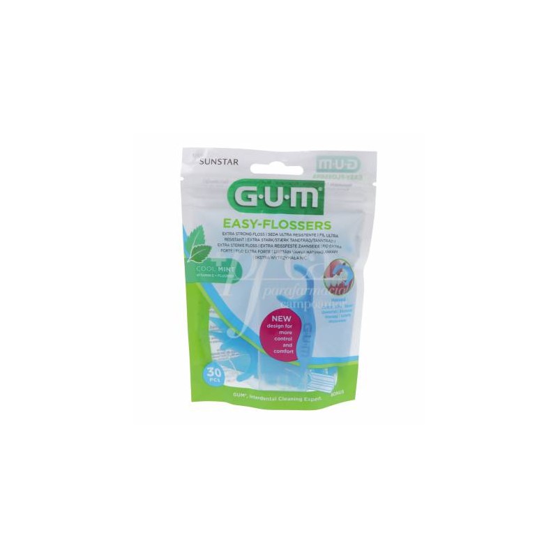 Gum Easy Flossers son aplicadores de seda dental con hilo incluido para facilitar la limpieza dental. La seda dental que incluyen es especial. Es un hilo ultraresistente, recubierto de vitamina E y flúor, que se desliza fácilmente entre los dientes y es resistente al deshilachado, rotura o combado. Cuentan con un mango fácil de manejar con agarre para las yemas de los pulgares para un mejor control.