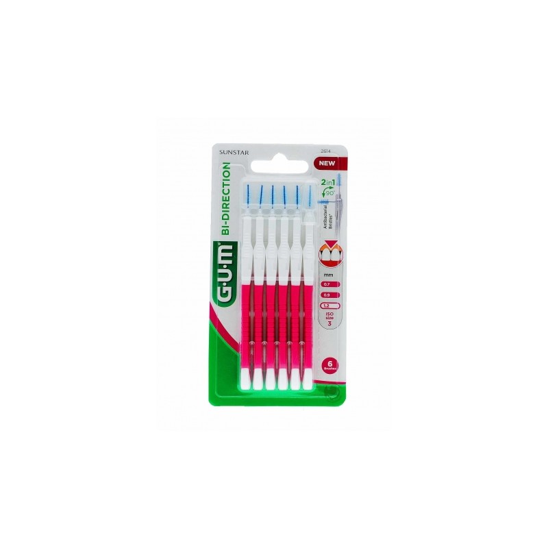 Cepillo interdental bi-direccional para llegar a los orificios anteriores y posteriores. Sus filamentos están recubiertos de clorhexidina para mantener el cepillo limpio y en buen estado. Limpieza segura y suave.