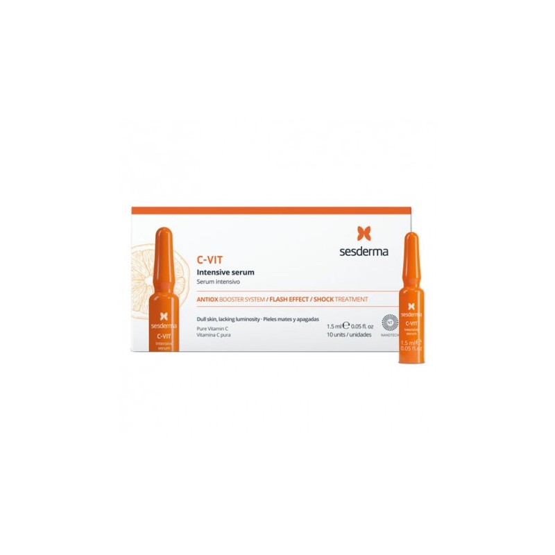 Sesderma C-Vit Ampollas 10x1,5ml han sido preparadas con un 12% de vitamina C pura, ahora con un novedoso formato de 10 ampollas. Estas ampollas están especialmente indicadas para las pieles que han sufrido una exposición excesiva la sol, pieles con fatiga con ausencia de vitalidad y de luminosidad. También están preparadas para aquellos que han sometido su piel a un tratamiento cosmético o dermatológico agresivo, como por ejemplo: un peeling químico o una microdermoabrasión.