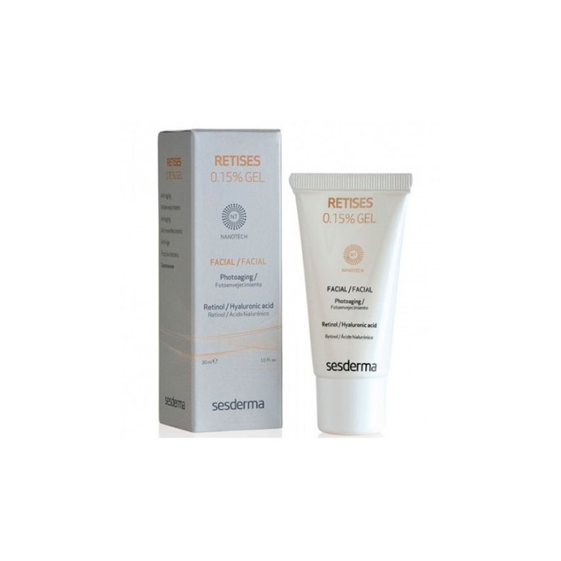 Sesderma Retises Nano 0,15% Gel 30 ml es un gel antiedad reparador que protege y mejora la salud de la piel. Gracias a sus activos, reduce las señales del envejecimiento y del fotoenvejecimiento. Sus ingredientes principales son el ácido hialurónico que crea una matriz de hidratación al retener el agua y el retinol que aumenta la producción de colágeno, revierte los daños producidos por el sol y, entre otros efectos, actúa contra las manchas.