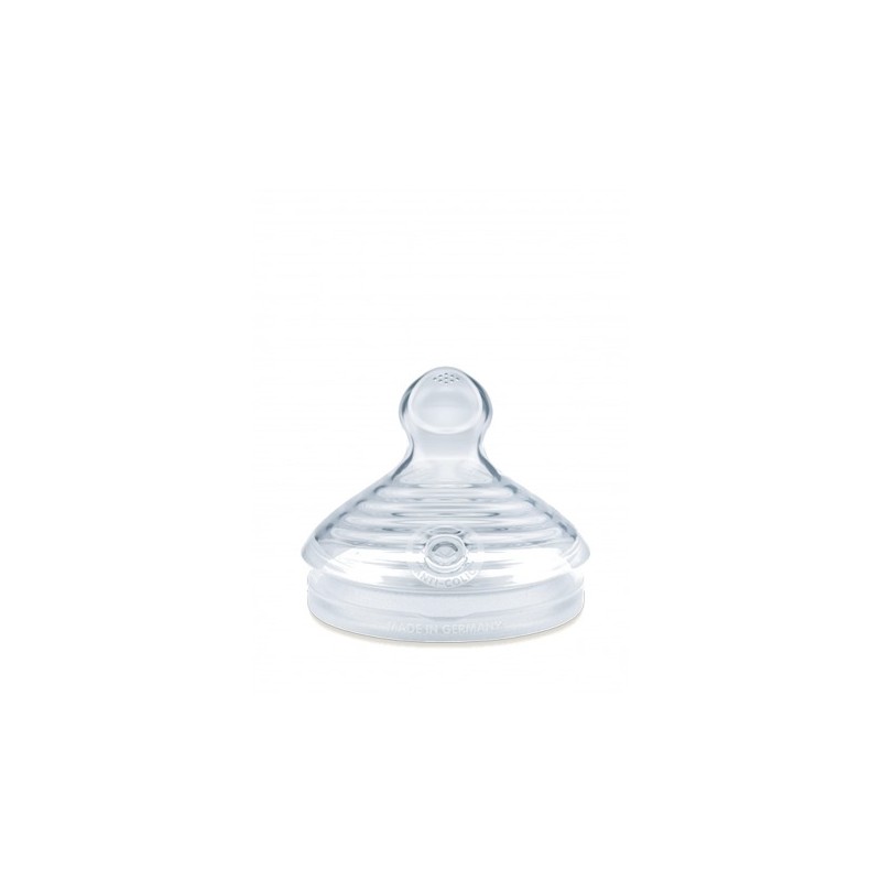 Especialmente ancha y flexible facilita la succión. Con una zona extra-suave que se adapta al paladar del bebé. Válvula anti-cólico que permite una toma sin pausas, evita la ingesta de aire y previene los cólicos.