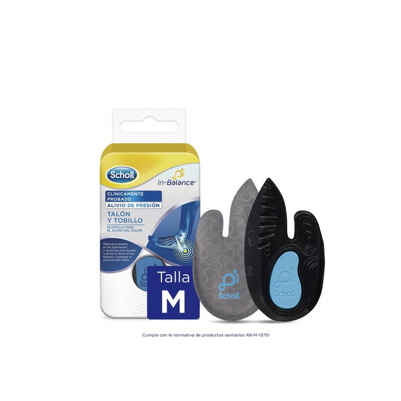 La Plantilla In-Balance Talón y Tobillo Talla M de Scholl, reduce la presión en ligamentos y tobillos, gracias a tecnología exclusiva de estructura con control de movimiento, y doble capa de gel amortiguador con apoyo flexible, que ofrece confort y alivia el dolor en los talones asociado a fascitis plantar o espolón calcáneo.