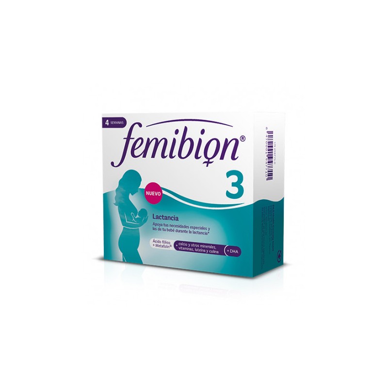 Femibión 3 Lactancia 28 Comprimidos es un complemento alimenticio que apoya tus necesidades especiales y las de tu bebé durante la lactancia. Proporciona ingredientes bien selecionados como el DHA, que puede ayudarte durante este periodo como suplemento a una dieta variada.