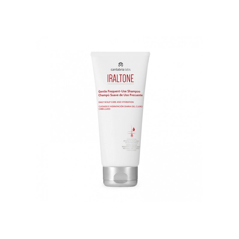 Iraltone champu uso frecuente 200mL. Limpia en profundidad sin dañar el manto lípidico, ayudando a reparar el cabello dañado.