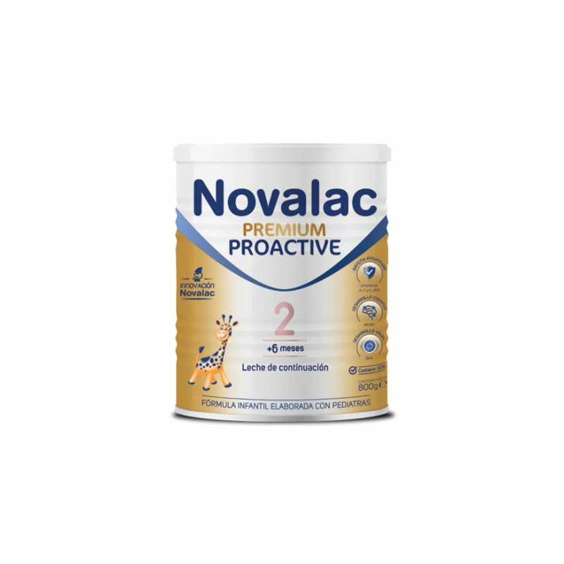 ¿Te preocupa la alimentación de tu bebé? Novalac Premium Proactive 2+6m 800gr es una fórmula infantil elaborada con pediatras para aportar a los más pequeños todos los nutrientes que necesitan para favorecer su normal desarrollo y contribuir a su bienestar. La fórmula de esta leche de continuación para bebés a partir de 6 meses contiene prebióticos GOS para ayudar al confort digestivo del pequeño, y probiótico Bifidobacterium lactis, que reduce en un 31% las infecciones respiratorias y reduce el número y duración de los episodios diarreicos. Novalac Premium Proactive 2 +6m se presenta en bote de 800 gramos y con DHA microencapsulado para un buen sabor y mejorar la aceptación.