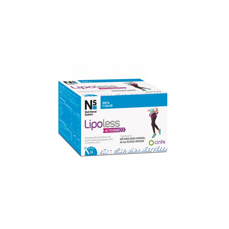 Ns Lipoless Actividad 14 Sticks se trata de un complemento alimenticio para aquellos que deseen regular la grasa acumulada durante la actividad física, perder un extra de peso en la alimentación variada y equilibrada y disminuir la grasa abdominal al mismo tiempo que andamos. Está indicado para adultos.