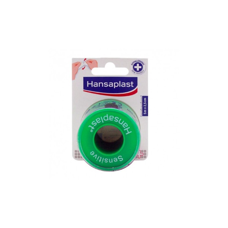 El Hansaplast Esparadrapo Sensitive 5mx2.5cm Se trata de un esparadrapo fijador de apósitos y/o compresas, para primeros auxilios concebido especialmente para personas con piel muy sensible. Contiene un apósito hipoalergénico muy suave para respetar al máximo la piel sensible, que garantiza así la máxima curación de la dermis. Además, el esparadrapo puede rasgarse con los dedos para facilitar su aplicación y no deja residuos, por lo que evita que las heridas se infecten o no cicatricen correctamente. El esparadrapo sensitive está disponible con las medidas 5mx2,5cm.