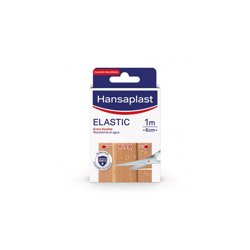 Hansaplast Elastic Tira 1m X 6cm es un apósito longitudinal que puede ser recortado al tamaño ideal, según la necesidad del individuo.