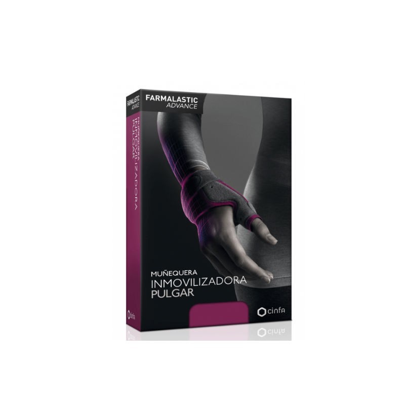 La muñequera Farmalastic Advance ha sido diseñada para ofrecer un elevado nivel de inmovilización, protección y descanso del pulgar. Limita el movimiento del pulgar a nivel falange, metacarpo y trapecio sin reducir la funcionalidad de la mano y permitiendo el movimiento de pinza. Proporciona una óptima experiencia de uso gracias a su diseño envolvente que se adapta a la anatomía, alta transpirabilidad, ligereza y reducido volumen, acabados diseñados para no rozar ni irritar y elevado confort incluso en jornadas largas.