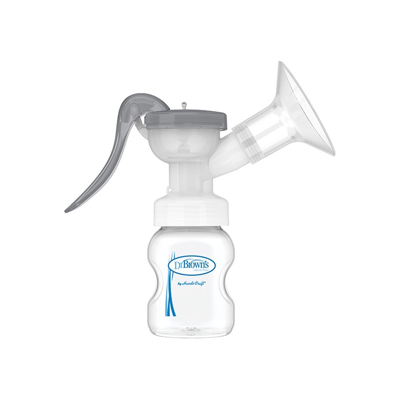 Sacaleches manual con copa para el pecho suave y flexible, que se adapta y acompaña al movimiento del pecho de la mamá.