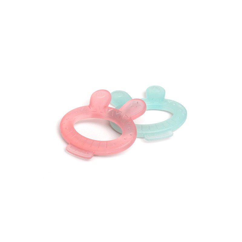Mordedor con forma de conejito fabricado en silicona. Sus pequeñas burbujas masajeadoras ayudan durante el proceso de dentición aliviando las encías