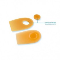 En las Taloneras de silicona el orificio desplazable es para hacer más efectiva aún la descarga sobre el talón.